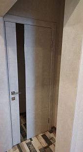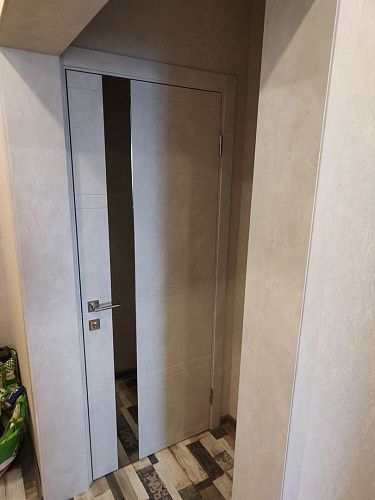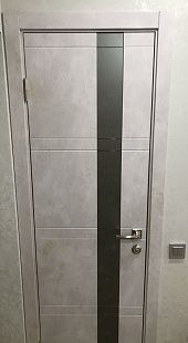 Дверь ПО Evolution 1 Бетон лайт стекло зеркало-графит из Экошпона COVERFLEX (Двери Нева) в с установкой и доставкой