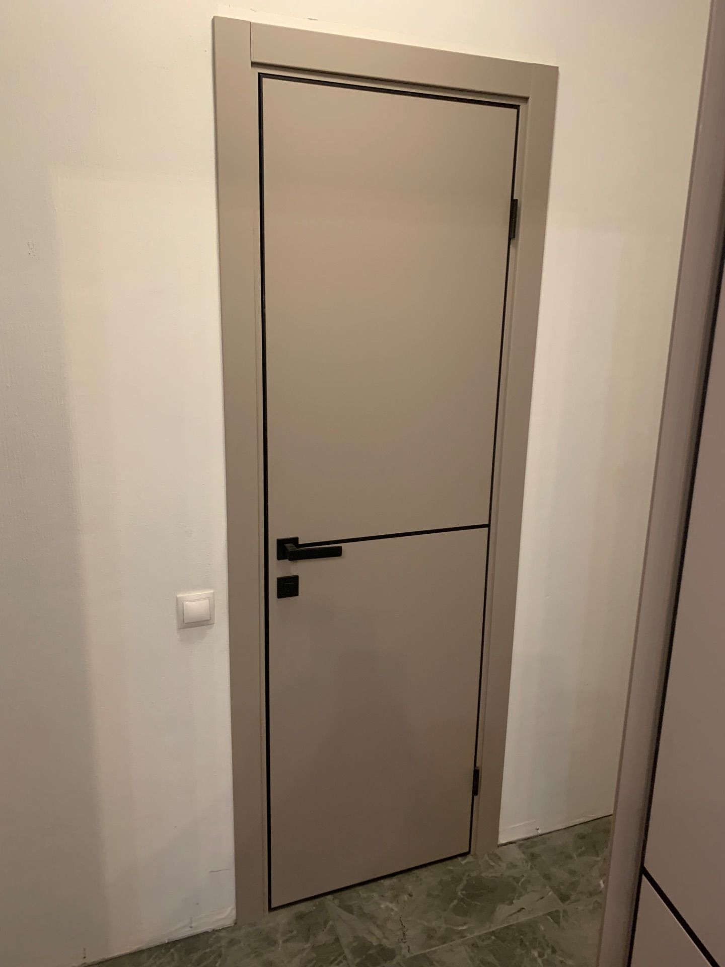 Кроме того производится врезка под скрытые петли. Такая опция помогает избежать лишних пыльных работ на адресе и сокращает время работы на монтаже. По возможности врезки в конкретную модель уточняйте у менеджеров.