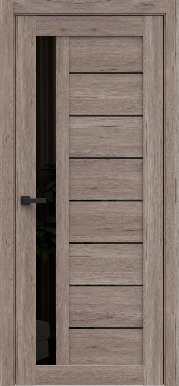 Дверь ПО Q37 Дуб эссе стекло черное из Экошпона COVERFLEX (Двери Нева) в с установкой и доставкой