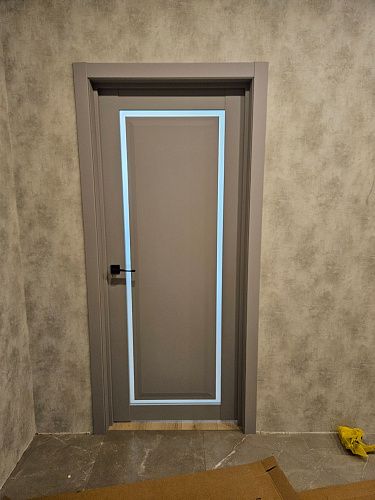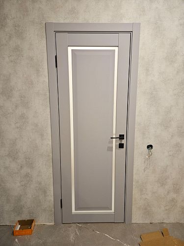 Дверь ПО Queen N23 Велюр серый стекло графит из Экошпона COVERFLEX (Двери Нева) в с установкой и доставкой