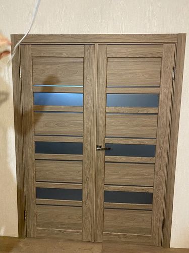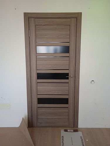 Дверь ПО Queen X3 Дуб тортора черное стекло из Экошпона COVERFLEX (Двери Нева) в с установкой и доставкой